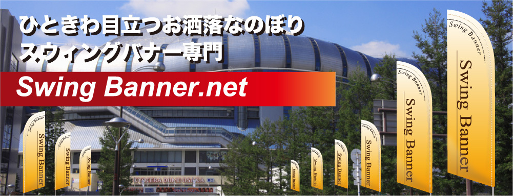 スウィングバナーとはヨットの帆をイメージさせた爽やかなシルエットが特徴でひときわ目立つお洒落な幟です。